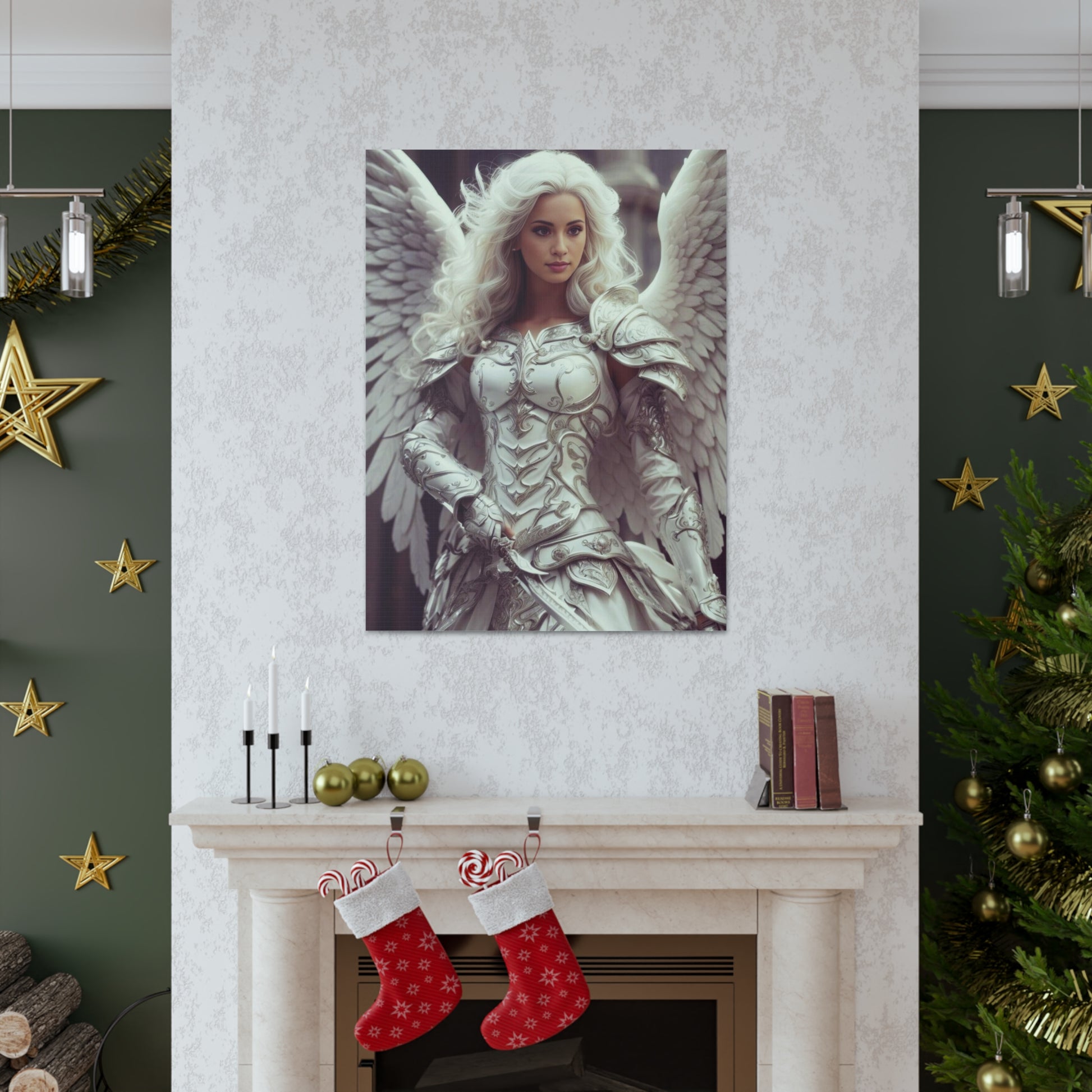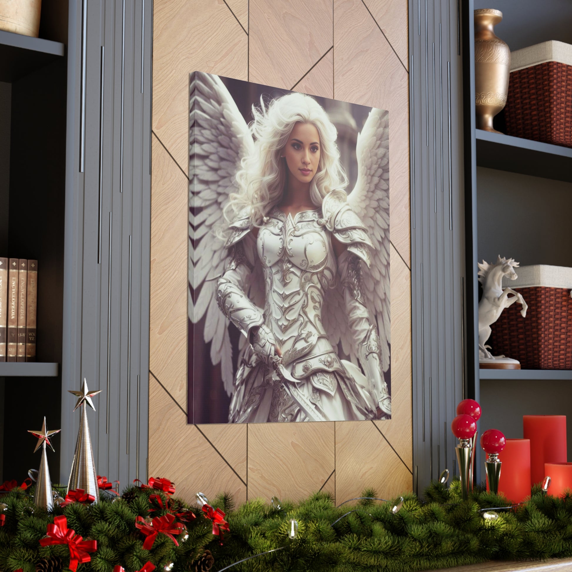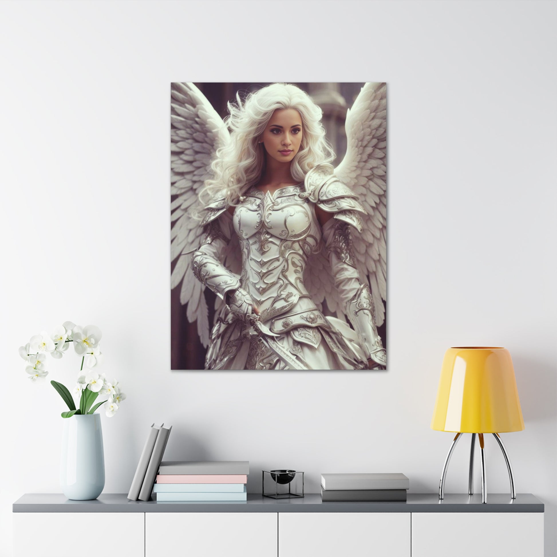 Leder du efter en unik og æterisk gave? Dette brugerdefinerede portræt af en himmelsk kriger er ideelt for fantasy-elskere, entusiaster med englemotiver, gamere og dem, der beundrer guddommelige krigere.